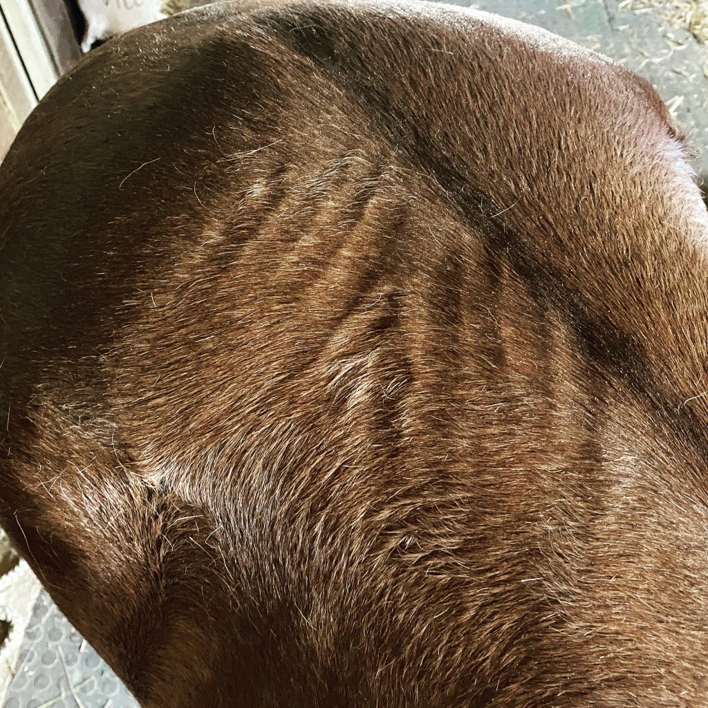 Gibt es Anzeichen für eine verkürzte Muskulatur im Rücken oder sind die Muskeln beidseitig gut und gleichmäßig ausgeprägt? Durch eine einseitig verkürzte Muskulatur kann es dazu führen, dass sich das Pferd auf einer Seite schlechter stellen und biegen lässt.